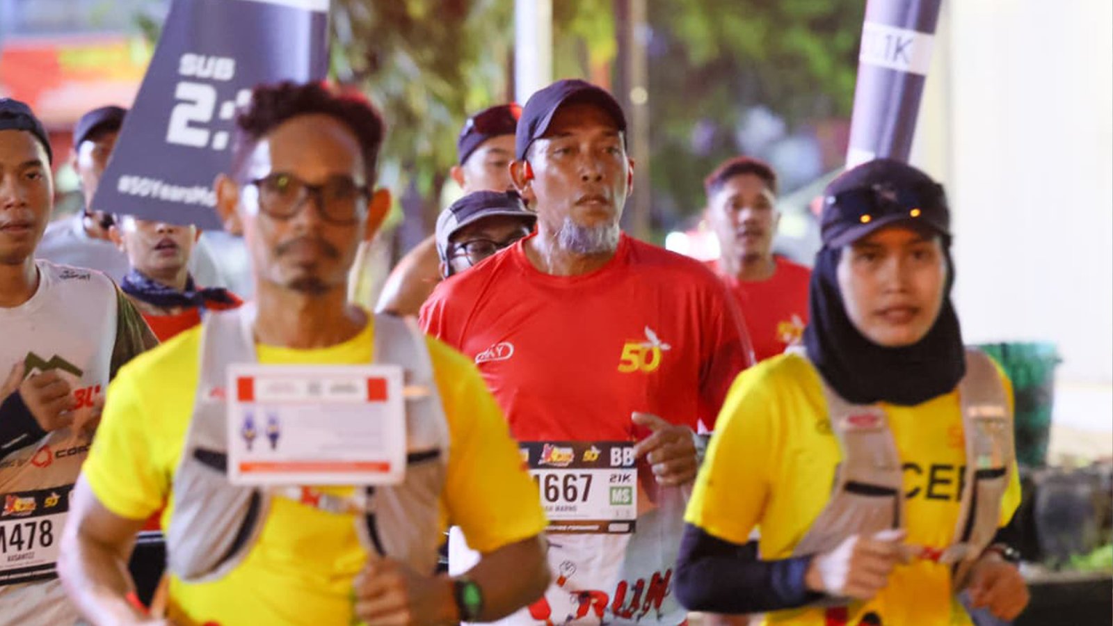 Sumarno tidak hanya hadir secara simbolis. Ia turut turun ke lintasan dengan mengikuti kategori Half Marathon (21K) dan berhasil menyelesaikan lomba dengan catatan waktu yang menurutnya merupakan rekor pribadi.