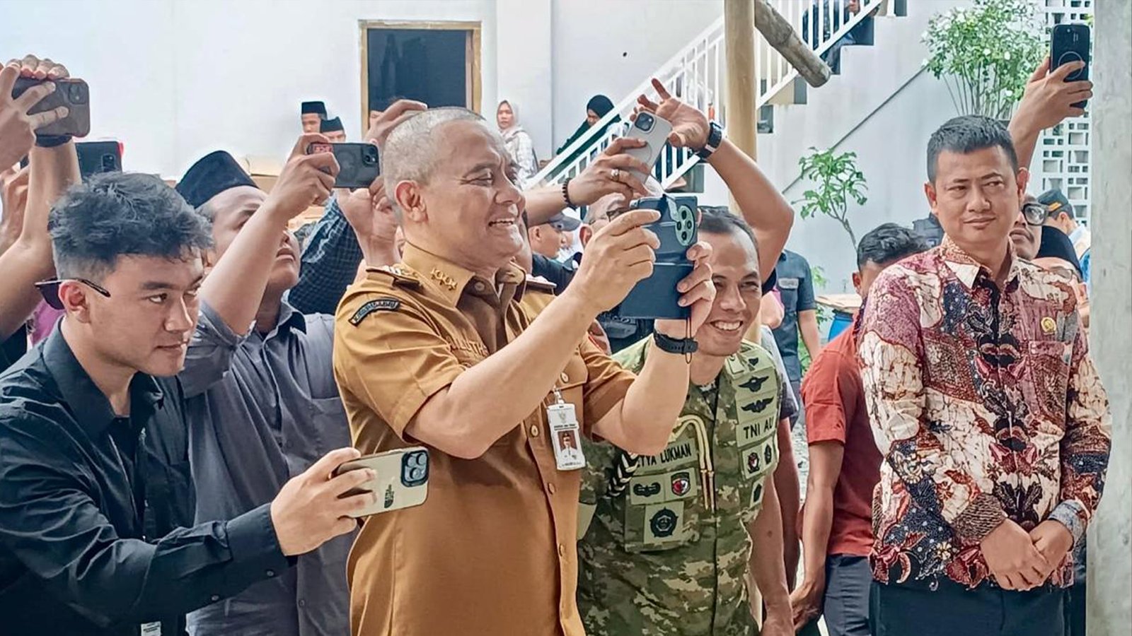 Senyum dan tawa terlihat dari warga, pengasuh pondok pesantren, hingga pejabat yang hadir. Wapres Gibran pun melayani permintaan foto bersama warga dengan penuh keakraban.