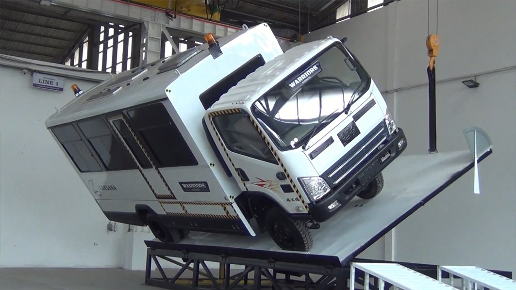 Pada pelaksanaan kali ini, pengujian difokuskan pada kendaraan Manhauler Warrior, yang dirancang khusus untuk angkutan personel tambang dengan medan operasi ekstrem. Melalui uji guling ini, Laksana memastikan kendaraan mampu mempertahankan ruang aman penumpang sebelum dioperasikan di lapangan.