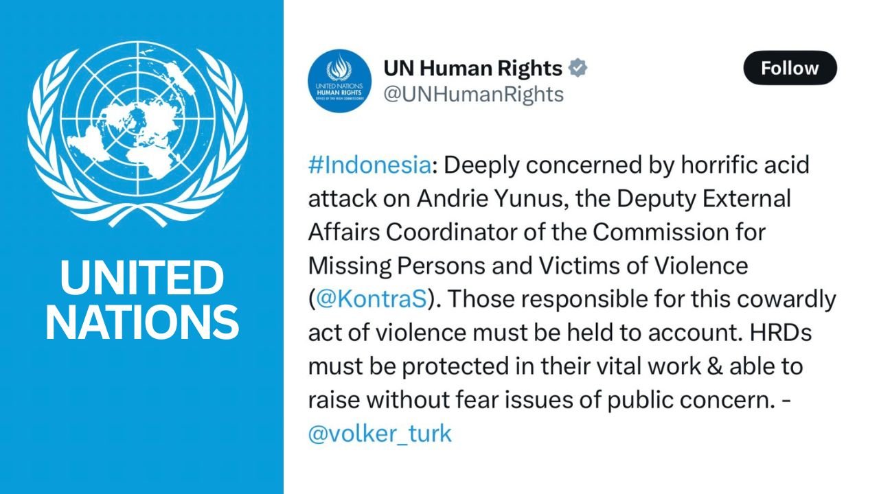 “Sangat prihatin atas serangan air keras yang mengerikan terhadap Andrie Yunus,” tulis Volker Türk dalam pernyataannya.
