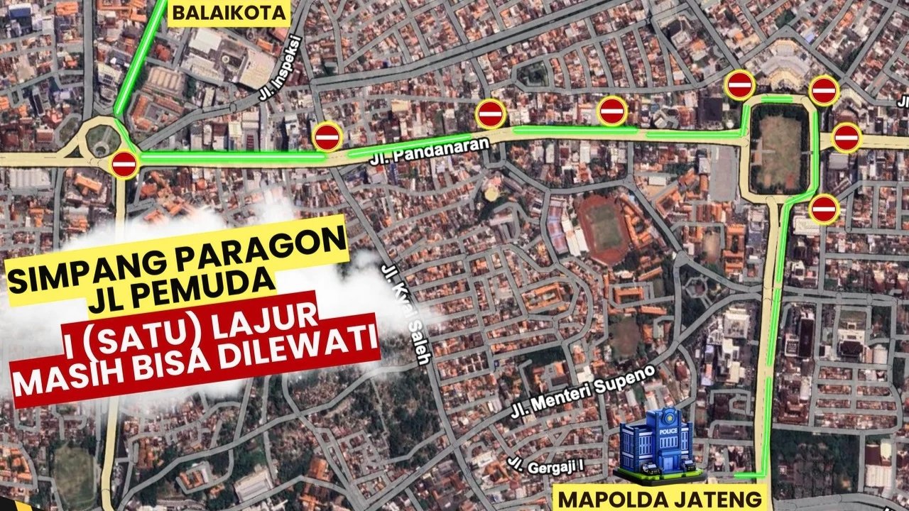 - Simpang Eka Karya Bergota dialihkan ke arah Pandanaran, seiring penutupan jalur dari TL Kyai Saleh ke Bergota dan akses dari Jalan Pekunden.