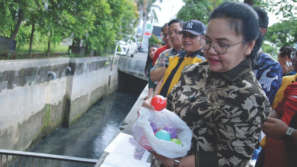 “Bola mainan dipasang chip GPS dan dihubungkan dengan petugas DPU. Dalam durasi setengah jam harusnya bergerak, tetapi kalau berhenti berarti ada kendala. Dari situ pasukan katak turun memastikan penyebabnya, bisa kasur, ban, sampah, atau sedimen,” jelas Agustina.