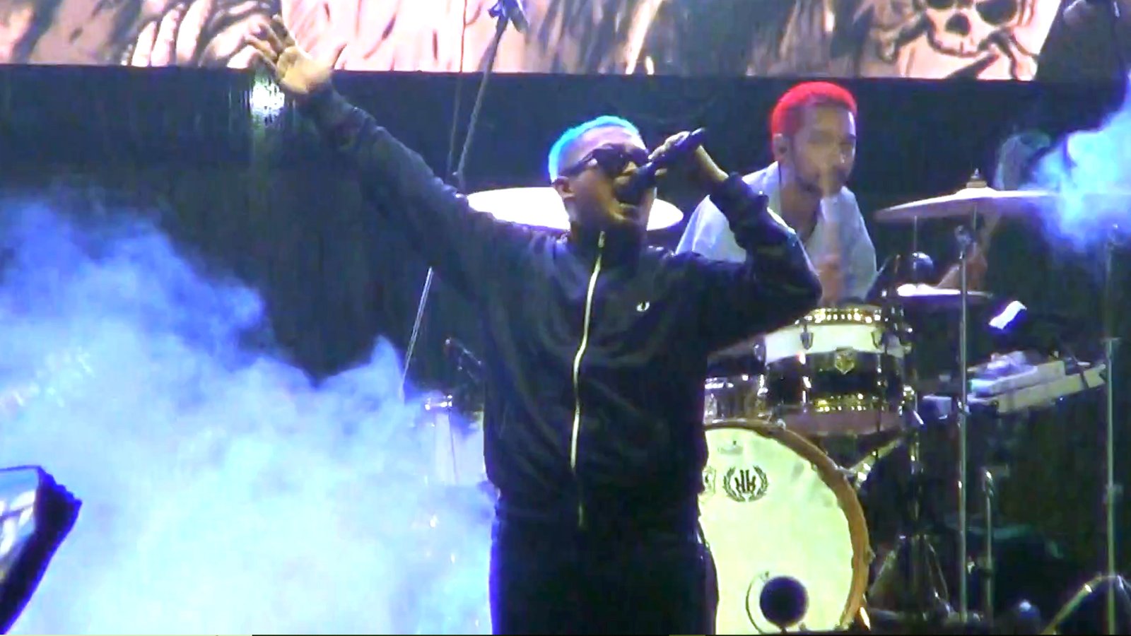 Sorak dukungan dan nyanyian penonton pun menggema, menunjukkan kuatnya solidaritas komunitas musik terhadap tragedi kemanusiaan itu.